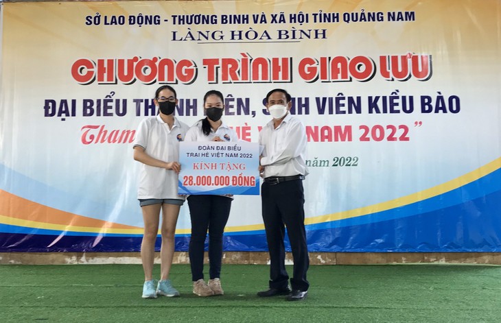 Ông Đặng Đôi, Giám đốc làng Hoà Bình, Quảng Nam, đại diện cho làng, tiếp nhận số tiền 28 triệu đồng là tấm lòng của các kiều bào trẻ gửi tặng.