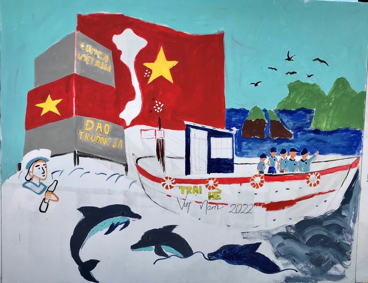 Tại đây, các thanh niên kiều bào tham gia trải nghiệm vẽ tranh trên bức tường lớn có chiều cao 2,5m, chiều dài 20m. Các bạn trẻ kiều bào thể hiện tình yêu biển, đảo bằng những nét vẽ về chiến sĩ hải quân chắc tay súng, bảo vệ chủ quyền thiêng liêng của Tổ quốc; ý thức trách nhiệm của tuổi trẻ kiều bào trong việc tuyên truyền bảo vệ chủ quyền biển đảo Việt Nam…