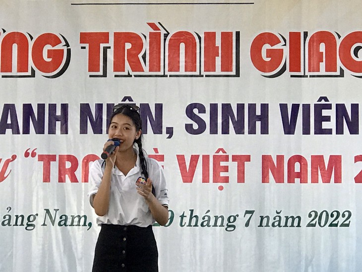 Hoàng Thảo Sandra, kiều bào Cộng hoà Séc, trình bày một ca khúc tặng các cụ và các em nhỏ làng Hoà Bình, Quảng Nam.