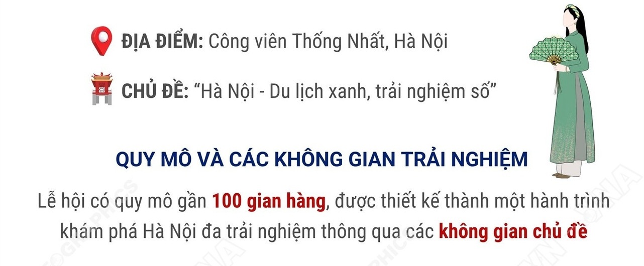 Sở Du lịch thành phố Hà Nội sẽ tổ chức Lễ hội Du lịch Hà Nội năm 2026 với chủ đề “Hà Nội - Du lịch xanh, trải nghiệm số” từ ngày 13-15/3/2026 tại Công viên Thống Nhất, phường Hai Bà Trưng, Hà Nội.