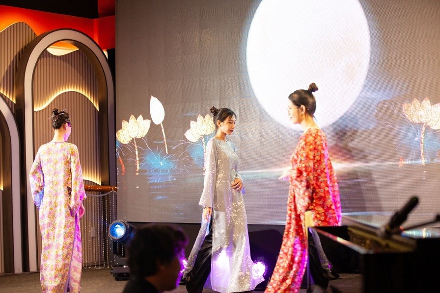 Màn trình diễn áo dài Ngân An- bộ sưu tập áo dài may từ vải Kimono, do sinh viên trường Đại học Đông Á thể hiện.